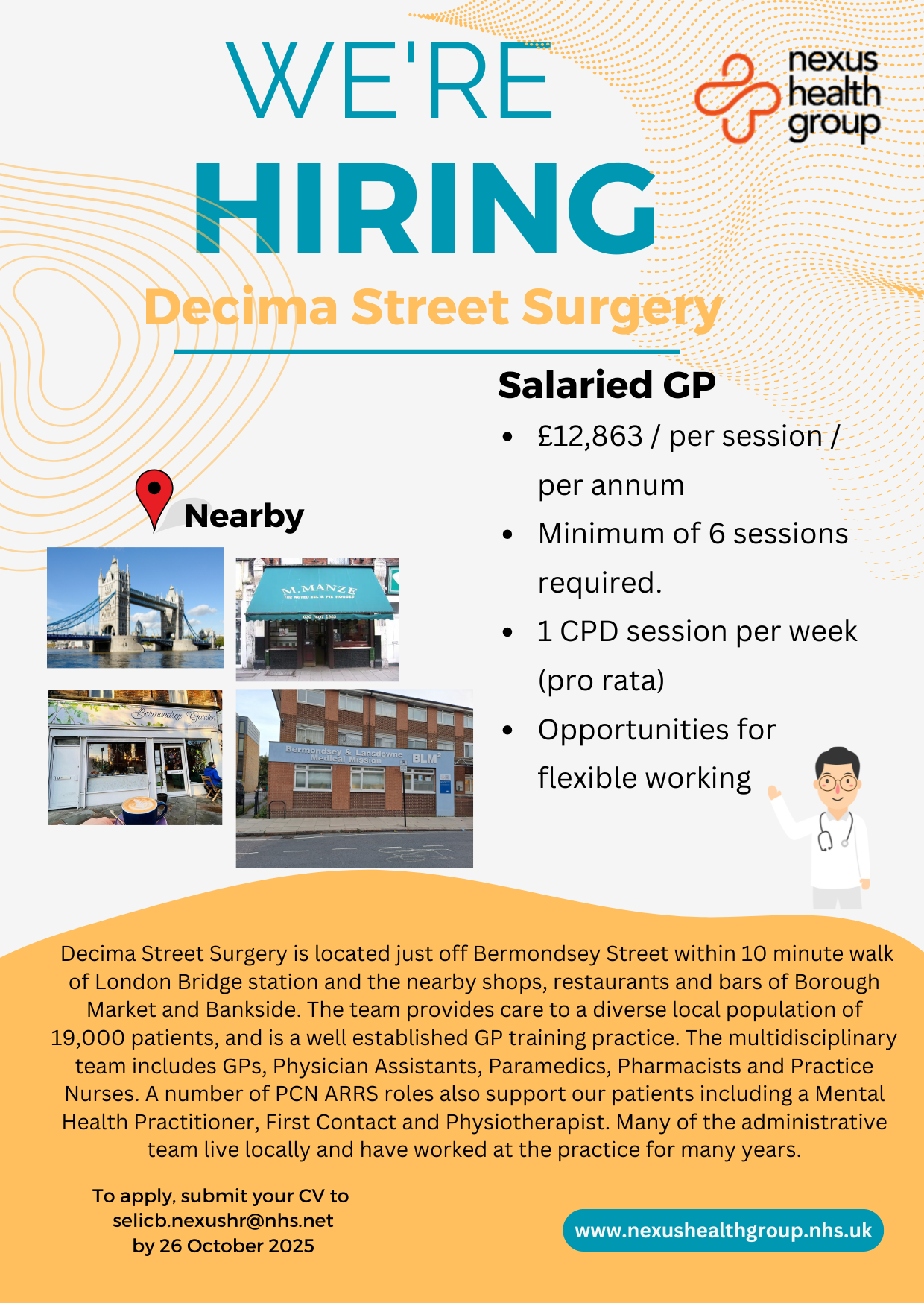 Nexus Health Group is one of Englands largest providers of NHS Primary Care services. We're a well recognised training organisation (for GPs and allied health professionals) serving a diverse list of approximately 80,000 patients from nine practice sites.