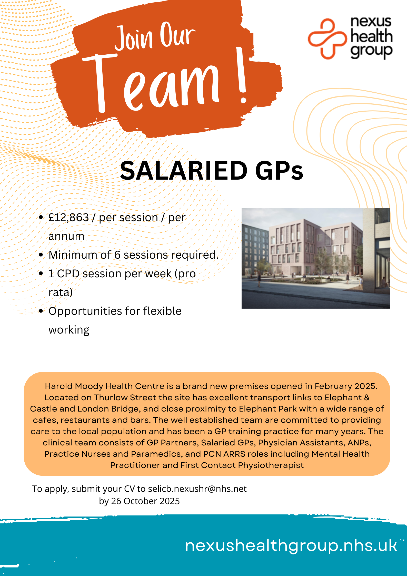 Find our vacancies NHSjobs and Linkedin or click on the links below. You can also email HR directly on